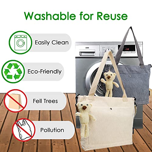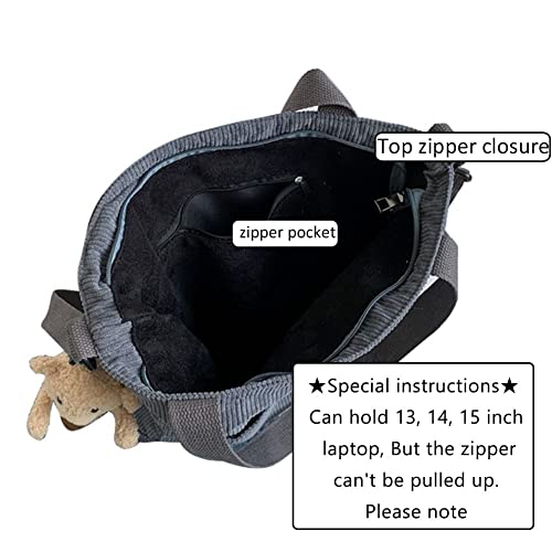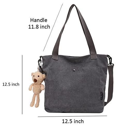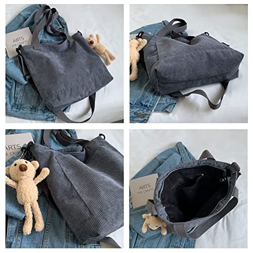 Borsa tote in velluto a coste per donne e ragazze casual borsa a tracolla grande capacità con cerniera e tasca esterna per la scuola lavoro viaggio shopping, Grigio, M