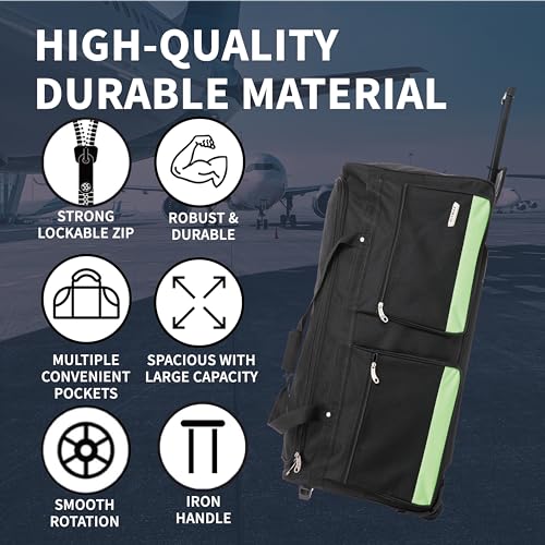 Borsa da viaggio, bagaglio a mano dotato di rotelle, in lana grossa, misure: 50,80 cm, 60,96 cm, 71,12 cm, 86,36 cm, 101,60 cm Nero Black 24 Medium