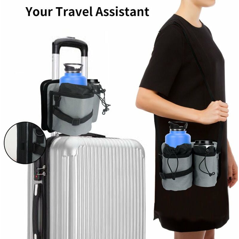 Nuovo assistente di viaggio - Trasportare bagagli e altri oggetti durante il viaggio è molto scomodo, soprattutto per i bambini. Ma con questo portabicchieri da valigia, ora puoi tenere due drink. Questo portabicchieri è adatto a tutti i tipi di bagagli e alla maggior parte delle bottiglie e dei thermos per bevande. Design esclusivo] Il portabicchieri da viaggio ha una cinghia di sicurezza per indossarlo e toglierlo facilmente. Puoi utilizzare le cinghie per fissare le tue bevande e le cannucce per tenerle al sicuro. Portabicchieri per valigia pieghevole: il nostro portabicchieri per bagaglio da viaggio è progettato per risparmiare spazio ed è facile da trasportare. Le cinghie elastiche si adattano a più maniglie dei bagagli, offrendoti più opzioni. È facile viaggiare. Facile da usare e resistente: questo accessorio per bagagli è realizzato in tessuto oxford di alta qualità, resistente e lavabile. Un lato per le bevande, l'altro per gli snack e una tasca in rete per biglietti