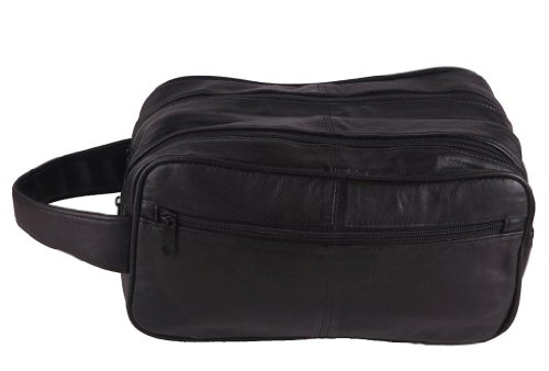 Borsa da viaggio in pelle nera con 2 scomparti e manico