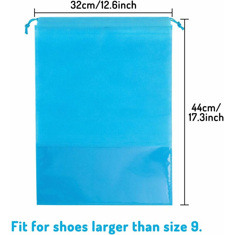 Grandi dimensioni: la borsa misura 44 cm x 32 cm (17,3'' x 12,6''), non solo per riporre le scarpe, ma anche per i vestiti, un asciugamano o cosmetici Confezione inclusa: ci sono 15 azzurri borse per la conservazione nel nostro set. Ottimo per viaggi e viaggi d'affari o per tenere le scarpe al riparo dalla polvere nell'armadio Usi ampi: può essere utilizzato come borsa per scarpe per lezioni di yoga, lezioni di corsa, lezioni di ballo, esercizi di ginnastica, viaggi, ecc. Può anche essere considerata una borsa per il trucco, una borsa da viaggio, una borsa per il bucato, una custodia, una borsa per molteplici applicazioni Qualità premium: tessuto non tessuto con coulisse spessa per una facile organizzazione, leggero e impermeabile, che offre una buona traspirabilità Comodo: una finestra trasparente sulla borsa rende facile e veloce identificare il contenuto della borsa delle scarpe invece di estrarla, risparmiando tempo Colore: Azzurro Un buon design per aiutarti a tenere le scarpe