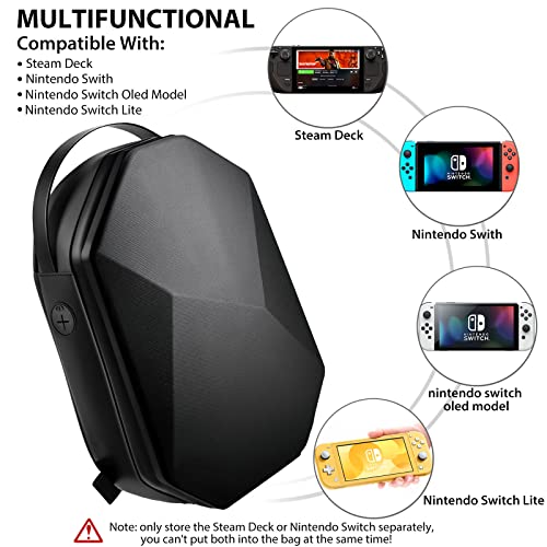Borsa da Viaggio per Steam Deck Custodia Rigida Trasporto Compatibile con Steam Deck e Accessori Custodia Protettiva Steam Deck Impermeabile Zaino con Jack per Cuffie, Nero