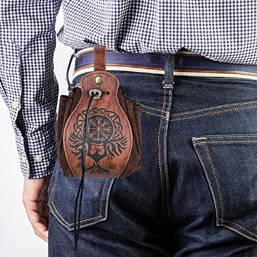 Borsa vichinga medievale in finta pelle, borsa medievale in finta pelle, marsupio in pelle vichinga, marsupio vintage, borsa portatile con coulisse per uomini e donne