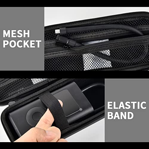 【Comodo stoccaggio】: la borsa presenta un design pratico che consente agli utenti di riporre il compressore d'aria, il cavo di ricarica e gli accessori come un adattatore per ugello d'aria francese e ugelli ad ago in scomparti separati. Il cinturino elastico mantiene il dispositivo in posizione, mentre le tasche con cerniera mantengono gli accessori organizzati.