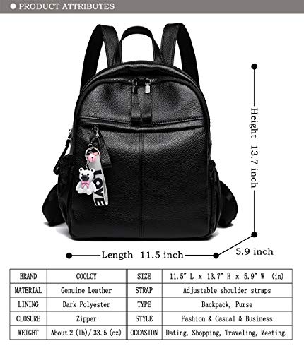 Borsa zaino in vera pelle per le donne Multi-funzionale morbido zaino in pelle per le signore, nero, Large, Zaini Daypack