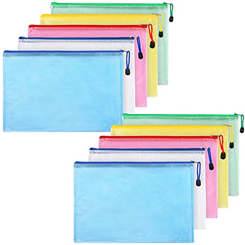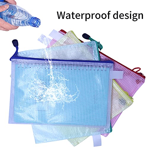 Borse di File, JYTZ 10Pcs A5 Sacchetto di Zip Impermeabile Mesh Sacchetto del Documento per Viaggio, Uffici, Scuola Cartelline, 5 Colori