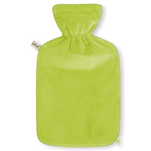 Borse di acqua calda premium da 2 litri con copertura in pile coreano Supersoft di alta qualità con zip e fodera extra - certificato BS1970:2012 - approvato TÜV Rheinland (verde)