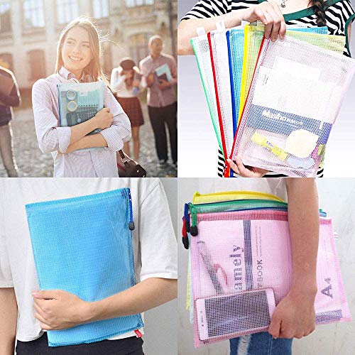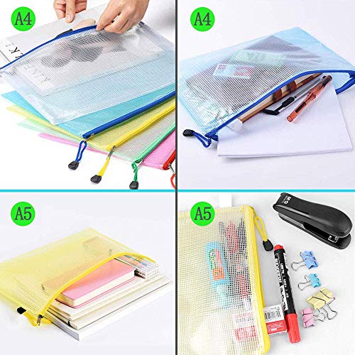 Borse di File, Cartelline A4, Buste Con Zip, 12 Pezzi 6 Colori Sacchetto di Zip A5 Impermeabile Mesh Sacchetto del Documento per Uffici Cosmetici Forniture Accessori da Viaggio
