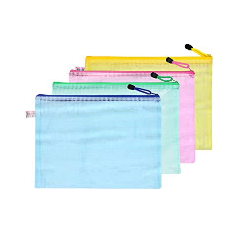 CHSG 20 Pcs Borse Di File, A4 Cartelline Plastica Sacchetto Zip Impermeabile Mesh Del Documento, Trasparente Mesh Buste Portadocumenti Per Uffici, Scuola, Cosmetici, Viaggi D'affari (Colore Casuale)