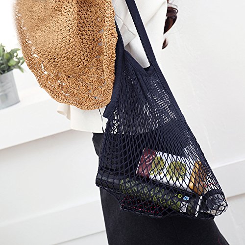 Borse di rete in cotone riutilizzabili, perfette per la spesa, per la spiaggia, per l'acquisto di alimenti. Nero