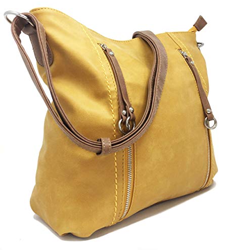 Borse di design per le donne vendita MILANO Classic Italian Styled Ladies Fashion Borsa a tracolla/Slouch in bella finitura opaca Vintage Faux Nu Buck Leather con tracolla regolabile., Giallo (ocra)