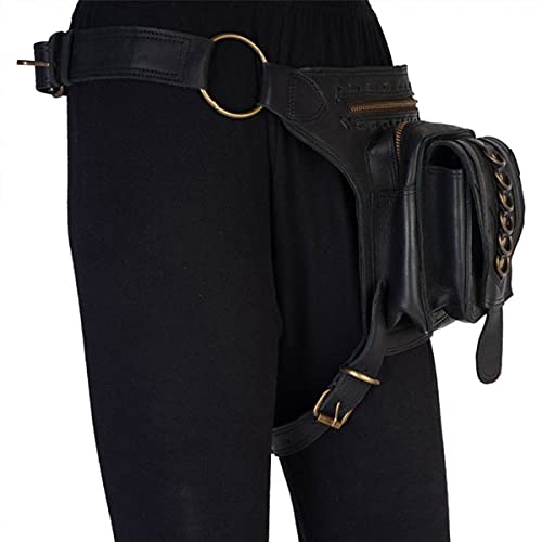 WFTD Borse da Gamba Steampunk Medievali, Marsupio in Pelle per Donna Uomo, Borsa in Pelle Moto retrò, Borse a Spalla Gotiche Accessori per Costumi Cosplay, Regalo di Halloween,Nero
