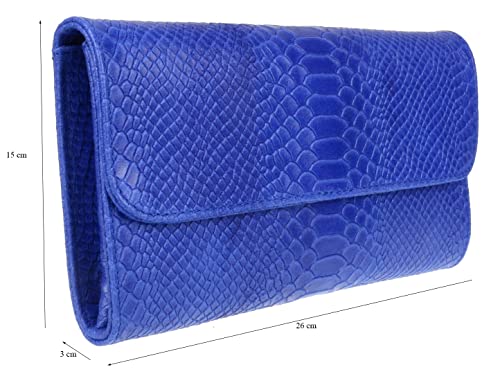 Pochette in vera pelle scamosciata con stampa serpente italiana.