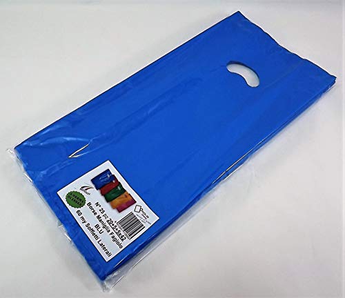 BORSE con MANIGLIA FAGIOLO E SOFFIETTI LATERALI COLORATE cm 20+5+5x42 per ASPORTO (BLU, 100 pz)