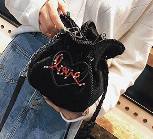 Borse Nappe Nastro Pompante Accessori Pacchetto Secchiello Versione Coreana Spalla Messenger Sacchetto Selvaggio,Black-OneSize