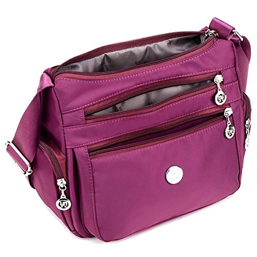 Borse in nylon impermeabile da viaggio a tracolla da donna, MOB-09803, Viola