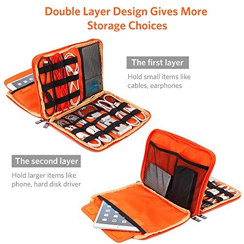 Borse per Organizzatori di Viaggio, Accessori per L'elettronica Borsa Stoccaggio a Doppio Strato Resistente Agli Urti per Cellulari, Cavi, Auricolari, Banchi di Potenza (Arancio Grigio)