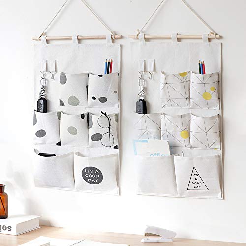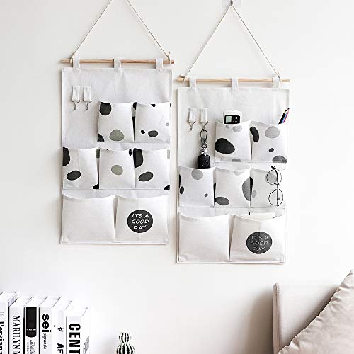 Borse a Muro Pieghevole Multiuso di Cotone portaoggetti appesa risparmio di spazio adatto per cucina, bagno, ufficio,Camera da letto, stanza dei bambini (Ciottoli bianchi e neri)