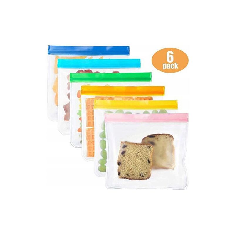 Sacchetto di stoccaggio alimentare sicuro al 100% e riutilizzabile - : Il sacchetto watt riutilizzabile è realizzato con un materiale pevabile spesso (0,5 mm) di grado alimentare, che è più resistente degli altri prodotti, solo 0, 3 mm di spessore. Approvato da FDA, in PVC gratuito, senza piombo, cloroless e senza BPA, può essere utilizzato per immagazzinare vari alimenti, come panini, frutta fresca, carne, verdure, snack, biscotti, patatine fritte, cibo, snack, biscotti, patatine fritte. [Tenuta e antigelo ARIA]: Queste sacchetti riutilizzabili con cerniera hanno migliorato le doppie cerniere per evitare perdite di liquido o aria. Non solo puoi ordinare e organizzare il cibo, ma puoi anche tenerlo fresco. Vanno in frigorifero e possono lavarsi le mani. Tuttavia, fai attenzione a non usarlo in un forno a microonde, un forno o lavastoviglie. [Combinazione di 6 borse alla moda e pratiche]: Dimensione perfetta (21,5 * 18 cm), 6 colori casuali, offrendo spazio sufficiente per lo stoccaggio