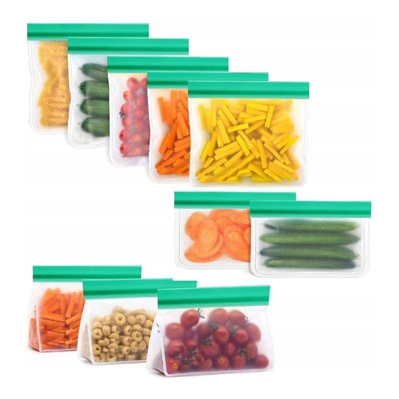 Sacchetto di stoccaggio di cibo sostenibile e sicuro - : Realizzato in PEVA 0,5 mm Ultra Spesso ed ecologico, qualità del cibo, senza piombo, clorato e riciclabile. Questo tipo di sacchetto di cotone è sicuro da usare, sicuro per la famiglia e sicuro per l'ambiente. [10 sacchetti, adattato per la famiglia e il viaggio]: è un comodo set di nuove cerniere (15,3 x 10,5 x 5,1 cm (20, 3 x 14,5 x 5,1 cm), offrendo diverse archiviazioni e organizzazione opzioni. Può ospitare tutto, comprese le faccende domestiche, stoccaggio di cucina, giocattoli, articoli di cancelleria e accessori da viaggio. Il design trasparente consente di visualizzare rapidamente il contenuto dell'interno. [Super impermeabile e nel congelatore]: Questa borsa va al congelatore. La cerniera doppia migliorata offre una guarnizione ultra-sigillata, garantendo che non vi siano perdite di liquido o aria. Il sacchetto di stoccaggio perfetto è adatto per la conservazione di vari alimenti, come panini, frutta fresca, carne