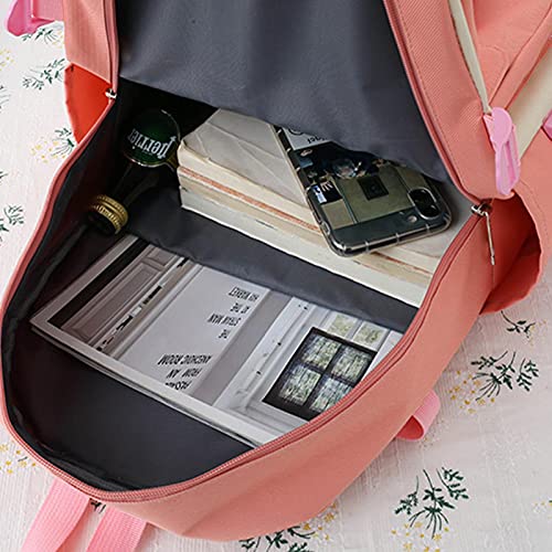 Borse da Scuola per Ragazze, 4 Pezzi Set Combo Zaino da Scuola con Ciondolo Carino, Borsa A Tracolla da Donna Zainetto da Viaggio Casual con Borsa alla Moda E Astuccio per Ragazze, Borsa Tote