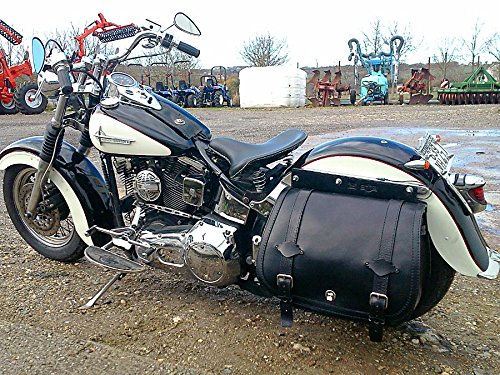 Borse. Selle. in cuoio per moto Harley Davidson Softail Fat Boy. Borsa in cuoio da 4mm volanato e ingrassato, di grande capienza. Adatta alle Harley Davidson Softail. Inoltre questa borsa può essere installata, (modificando la zona di fissaggio), anche sulle moto Kawasaki, Honda e Yamaha custom. e alle moto custom senza "ammortizzatori" Dimensioni: L53 H47 P22. Colori e dimensioni si possono modificare.