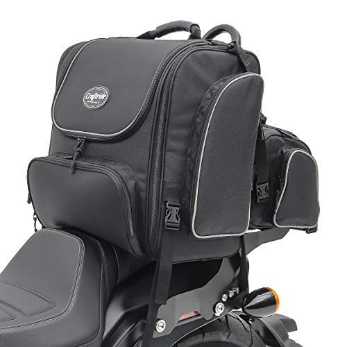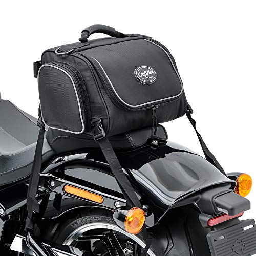 Set composto da borsa posteriore Sissybar TM2 e TM4 per bici custom, chopper e cruiser Volume totale 53-63 litri. Borsa posteriore Craftride TM2 e TM4. Volume espandibile da 39 litri a 49 litri mediante cerniere laterali