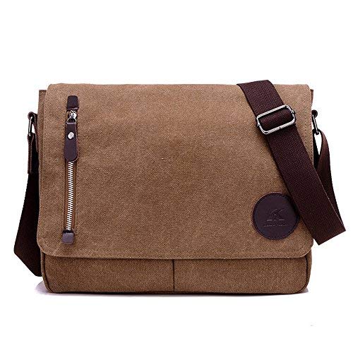 Uomo Borse a spalla Tela,Gindoly Retro Tela Borsa Sacchetto Borsa Tracolla Borse Messenger 13,3"per Uomini e Donne Sport, Lavoro, Scuola, Viaggi (Marrone)