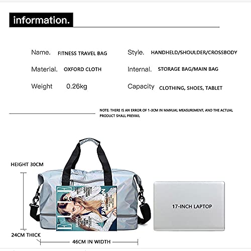 Chiusura con cerniera Separa scomparti bagnati e secchi: questa borsa sportiva offre un sacco di spazio di archiviazione, con un ampio scomparto principale con cerniera per la conservazione dei vestiti a secco o tutto il necessario per fitness e viaggi, e un impermeabile aggiornato PVC. tasca per fodera