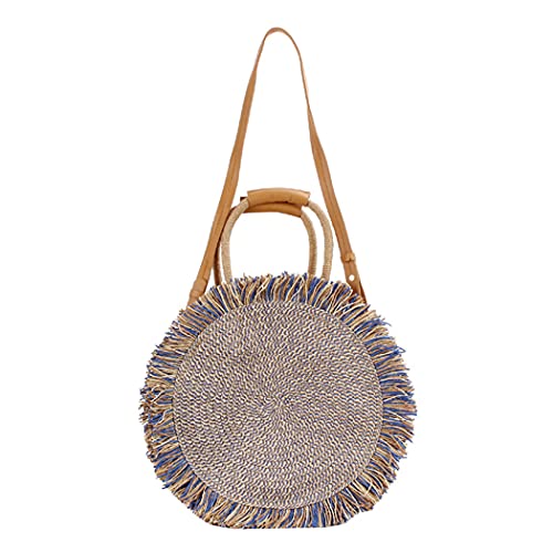 H.S.G.K Borse a tracolla e borsette da donna Borsa da spiaggia rotonda in paglia estiva Borsa a tracolla Blu