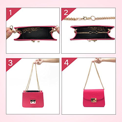 DIMENSIONE ADEGUATO: 18 * 8 * 14 cm, misura piccola ma abbastanza grande per contenere le necessità quotidiane come telefono, carte, chiavi, occhiali da sole, trucco, ecc. Il cinturino a catena in metallo dorato può essere utilizzato in due modi, vedere le immagini.