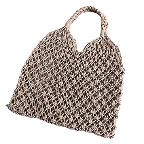 Borse a tracolla per le donne, borsa da spiaggia estiva filo di cotone spiaggia paglia borse leggere vacanze shopping viaggio 2 modi, Marrone, Taglia unica
