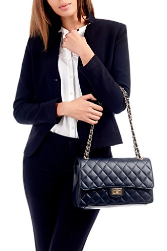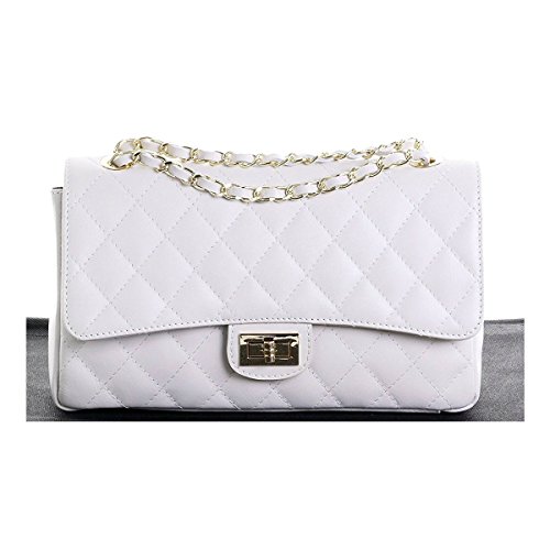 Forma classica, imbottito con disegno a diamante, decorato con catena in oro e cinturino in pelle, metallo Twist Lock