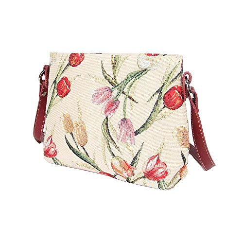Borsetta donna Signare alla moda in tessuto stile arazzo a spalla borsa messenger a tracolla floreale (Tulipano bianco)
