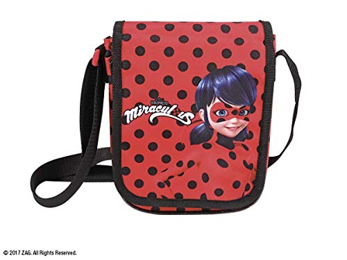 Borsetta Mini LadyBug per Bimba - Pratica Borsa Piccola a Tracolla per bambina con Strap - Rossa Pois Neri Coccinelle - Miraculous Le Storie di Lady Bug e Chat Noir - 19x15,5x4 cm - Perletti