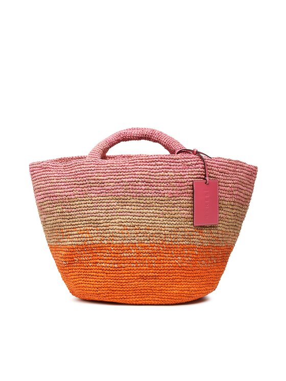 Manebi Borsetta Natural Raffia Panier V 6.8 AK Rosa