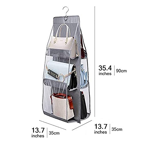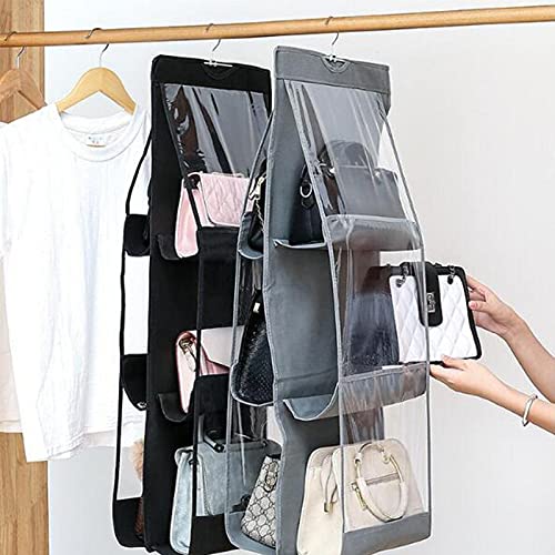 Capacità di carico: l'organizer da borsetta appeso ha 6 tasche, la soluzione perfetta per risparmiare spazio, pellicola bifacciale e trasparente, gestire facilmente le tue borse e trovare quella che desideri in qualsiasi momento.