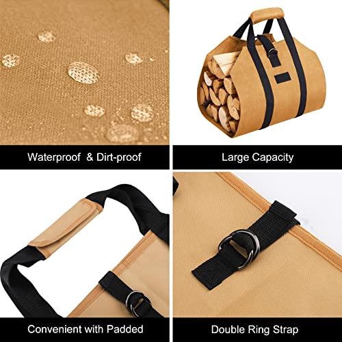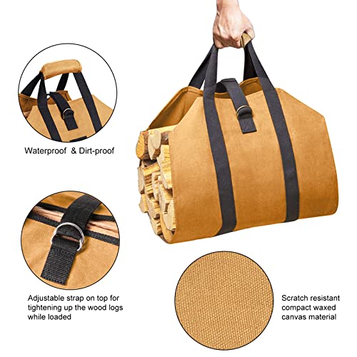 【Prova Durevole E Acqua】Materiale compatto in tela cerata impermeabile, resistente ai graffi, più durevole e portante, facile da pulire e di lunga durata.Borsa da trasporto per tronchi di legna da ardere, leggera e con un design compatto in tela, che la rende comoda per trasportare il legno in modo facile e confortevole.