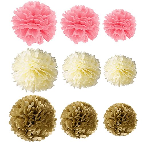 Borte One Set 16 Pz Decorazioni per feste con carta velina Pom pom e lanterne di carta e cordino di carta per decorazioni di compleanno per bambine