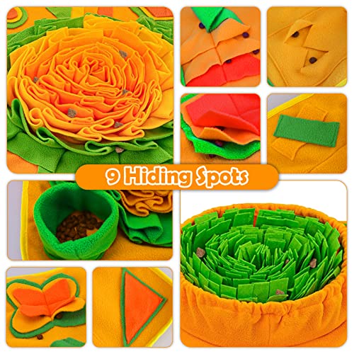 【Tappetino da fiuto e lento】il tappetino per cani di grossa taglia viene fornito con un grande fiore tricolore e una ciotola regolabile piena di erba artificiale, che offre un facile utilizzo per nascondere dolcetti e snack. È risvegliato e cucito con cura grazie all'uso di materiali sicuri e durevoli.