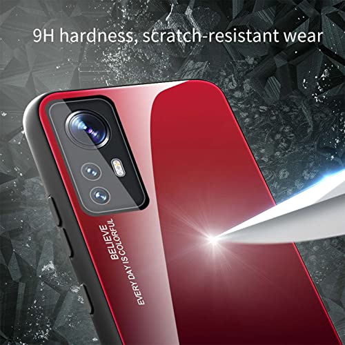 BORYA Cover per Xiaomi 12T 5G, Ultra Sottile Antiurto Morbida Silicone TPU Bumper Custodia, Colorato Gradiente Antigraffio Vetro Temperato Case, Blu-Rosso