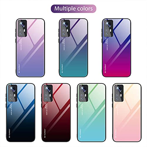 BORYA Cover per Xiaomi 12T 5G, Ultra Sottile Antiurto Morbida Silicone TPU Bumper Custodia, Colorato Gradiente Antigraffio Vetro Temperato Case, Blu Gradiente