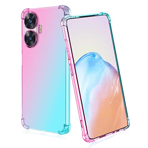 BORYA Silicone Cover per Realme C55, Trasparente Ultra Sottile Antiurto Morbida Setoso TPU Bumper Custodia, Elegante Colorato Gradiente Antigraffio Case, Rosa/Verde