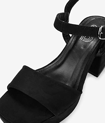 BOSANOVA Sandali con una striscia larga alla tomaia e suola a forma di tacco largo. Chiusura con bracciale con fibbia., Nero, 37 EU