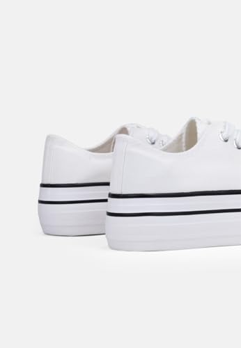 BOSANOVA Sneakers realizzate in materiale canvas con dettaglio di linee sottili a contrasto sulla suola. Chiusura con lacci. Scarpe da donna, bianco, 39 EU