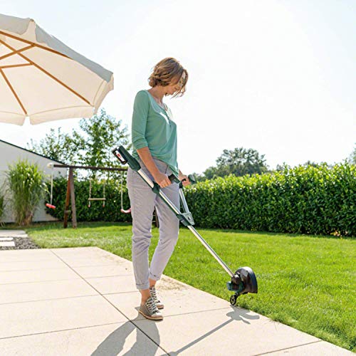 Taglio lungo sentieri o sotto panchine: Facilmente regolabile premendo il pedale per ruotare o abbassare le maniglie per la funzione di bordatura o inclinazione