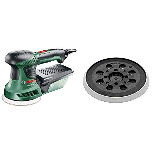 Bosch 06033A3000 Levigatrice Rotoorbitale Universal PEX 300 AE, 270 W, Verde + linea Hobby 2609256B61 - Disco abrasivo, superficie media, 125 mm, colore: Nero