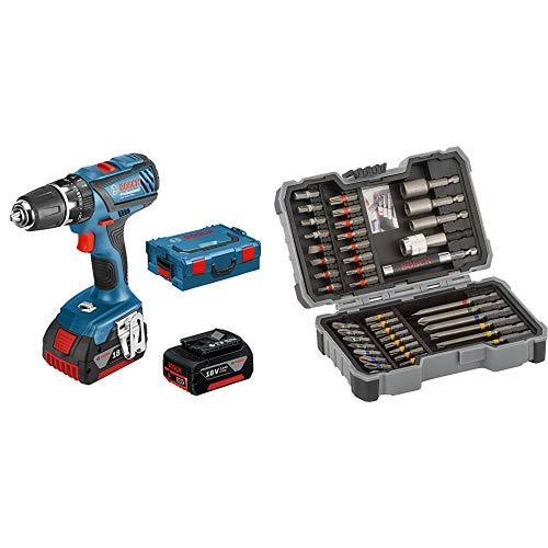 Bosch 2607017164 X-Pro Set Inserti Avvitamento, 43 Pezzi + Bosch GSB 18-2-LI Plus Professional Avvitatore a percussione, 2 x 3,0 Ah, 1 pezzo