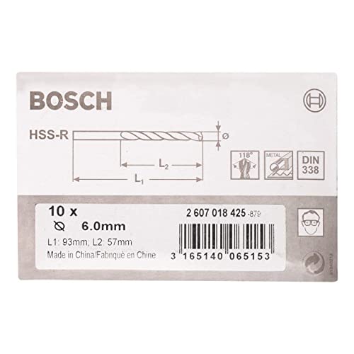 Bosch 2607018425 - Set di 10 punte laminate per metallo in HSS-R DIN 338, Ø 6 mm