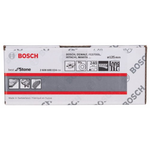 Bosch 2608608024 - Platorelli Abrasivi B.F.Stone, 125 mm, P240, 8 Fori, 50 Pezzi